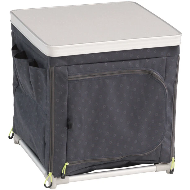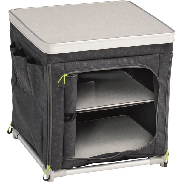 Outwell folding cabinet with two shelves, a zippered door and mesh ventilation openings.